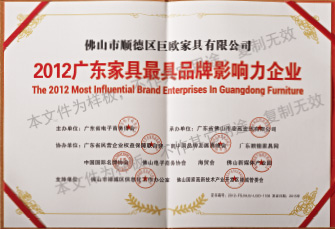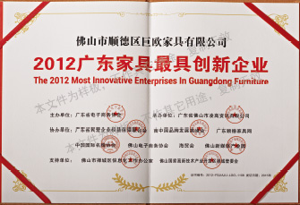 Awarded "Guangdong Furniture Most Innovative Enterprise" and "Guangdong Furniture Most Influential Enterprise" in 2012